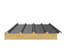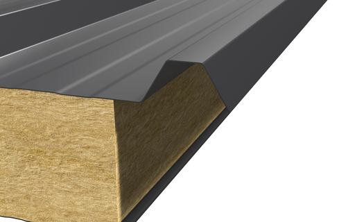 Толщина кровельных сэндвич-панелей варьируется от 50 до 300 мм, что позволяет выбрать оптимальное решение под регион эксплуатации и особенности объекта. Утеплитель из минеральной ваты обеспечивает надёжную тепло- и звукоизоляцию, а жесткие внешние оцинкованные металлические листы с антикоррозийным полимерным покрытием устойчивы к влаге, ультрафиолету и механическим повреждениям. Специальный профиль верхнего листа формирует дополнительное ребро жёсткости и улучшает водоотвод, препятствуя застою осадков на крыше.
